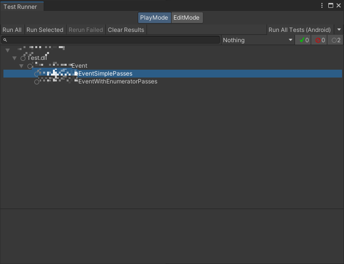 위 코드는 Play Mode에 있는 모든 테스트를 한꺼번에 실행한 것이다.