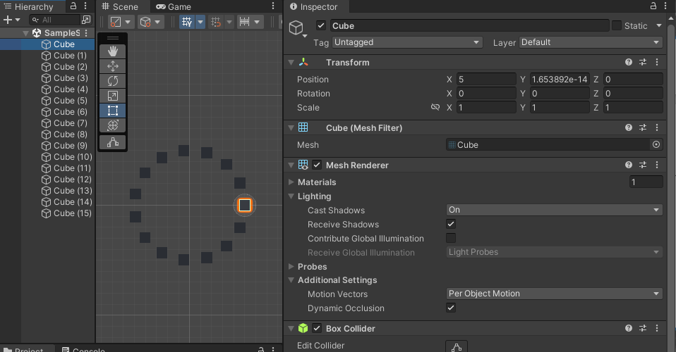 오브젝트들이 해당 범위 내에서 일렬로 한번에 배치되는 것을 볼 수 있다.