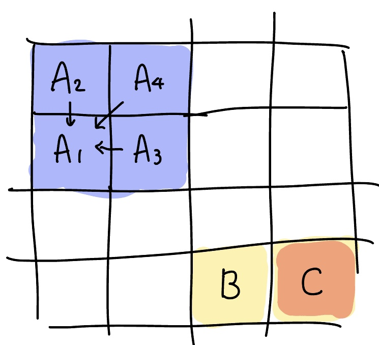 A는 2x2 크기의 블록이지만,