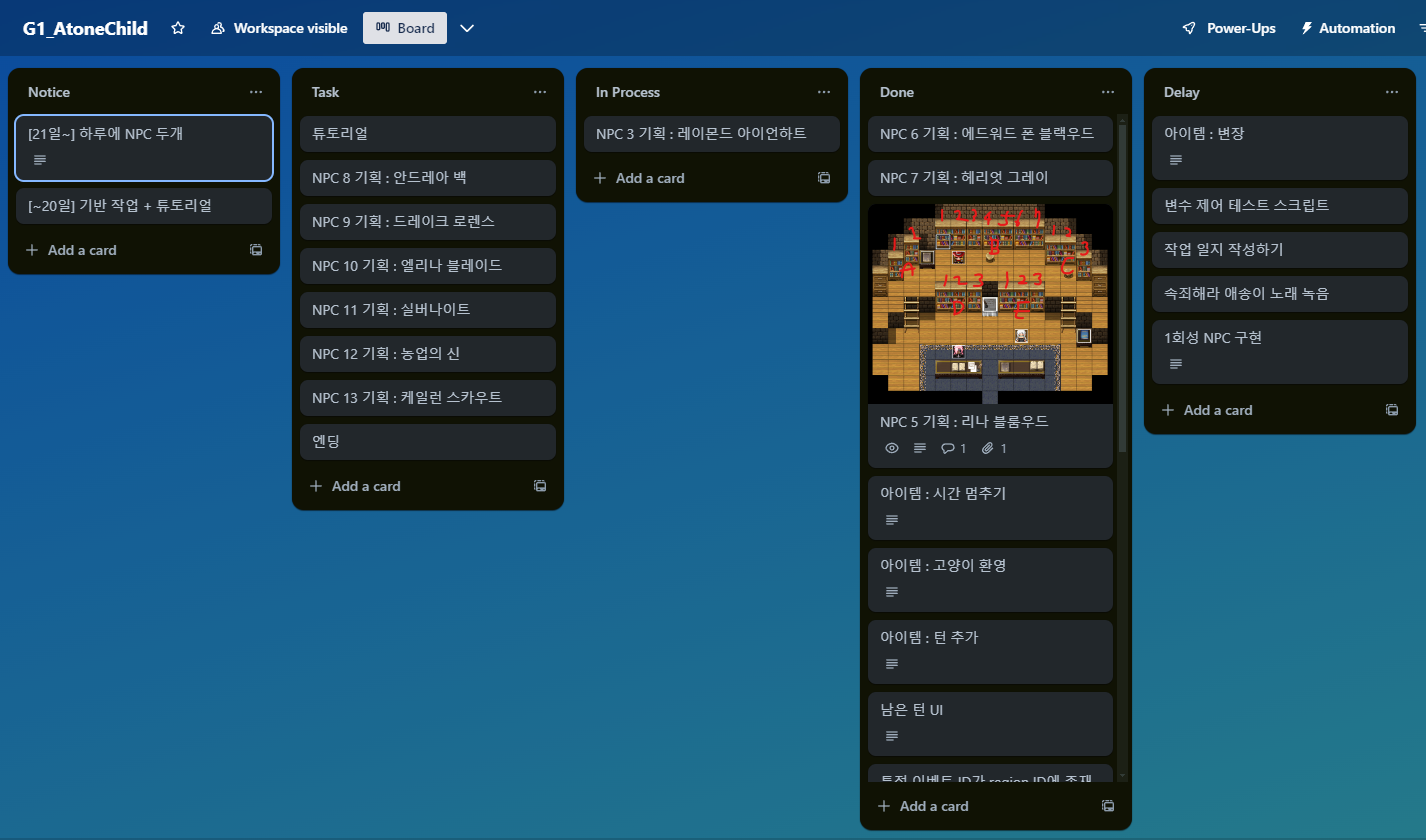 NPC 개발은 하나 당 뽀모도로 8타임을 기준으로 잡았다. 여기에는 다음과 같은 작업이 포함됐다.