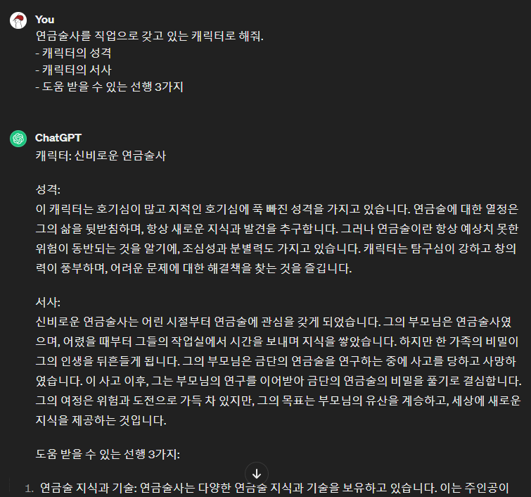 다만 GPT는 매번 평면적인 캐릭터를 던져줬기 때문에, 실제로는 이름과 서사 정도만 사용할 수 있었다.