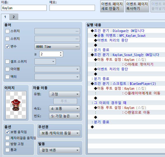 이벤트 페이지에 적힌 내용들은 플레이어 이동 직후 한번씩 수행된다.