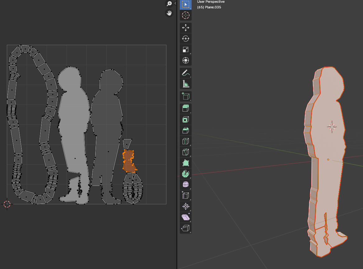 그리고 이 이미지를 블렌더로 불러와서 버텍스로 선을 딴다. 그리고 입체화시킨 뒤에 UV를 만듬. 이 UV 이미지를 Export해서 포토샵으로 불러온다.