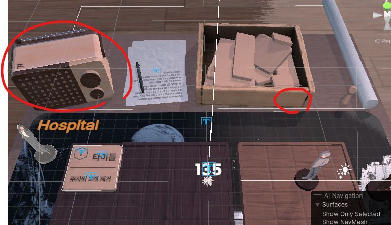 보드판, 타일 등은 직접 모델링했다. 다만 동그라미 친 것들은 당연하게도 무료 3D 모델링 사이트에서 가져온 것임.