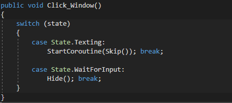 자고로 Enum엔 Switch가 아닌가. Window 클릭 시 해당 함수가 작동한다.
