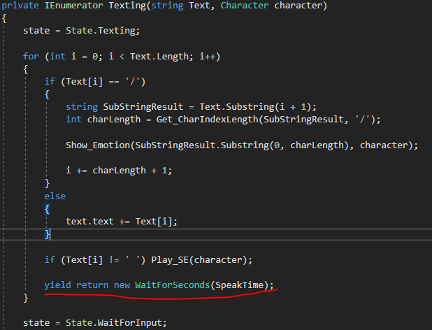 그런데 곰곰이 생각해보니 그냥 SpeakTime이 0일 때에는 WaitForSeconds를 작동시키지 않으면 되는 것 아닌가?