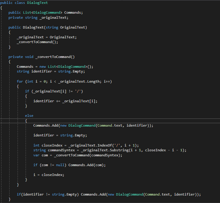 아무튼 Text가 List<Command> 형태로 변환되었으므로, Manager의 Texting 메서드도 그에 맞게 변화했다.