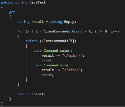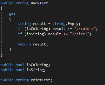 이렇게 하면, isColoring과 isSizing을 키는것만으로 color와 size 닫는 태그의 처리를 해줄 수 있다. 아래와 같은 방식으로 말이다.