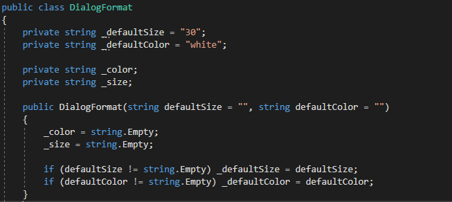 >> 해당 내용은 텍스트의 표시 형식에 관한 내용이다. DialogFormat 클래스로 따로 추출해주었다.